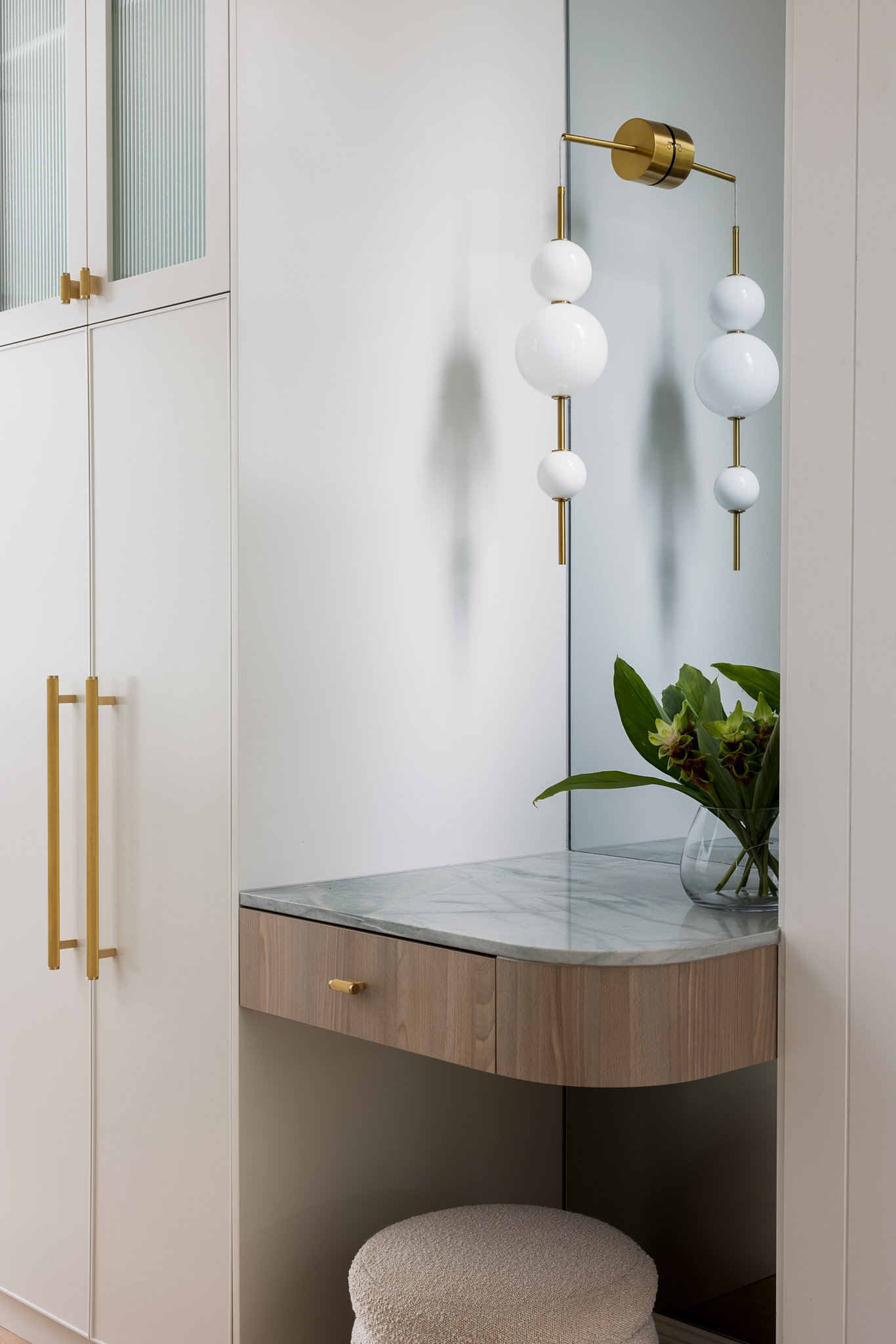 A reworked layout transformed the kitchen into the heart of the home, with bespoke joinery, sculptural detailing, and flexible spaces for everyday life and entertaining. Upstairs, a serene, light-filled ensuite and thoughtfully designed bathrooms complete a cohesive, refined home shaped by intelligent planning and timeless design.