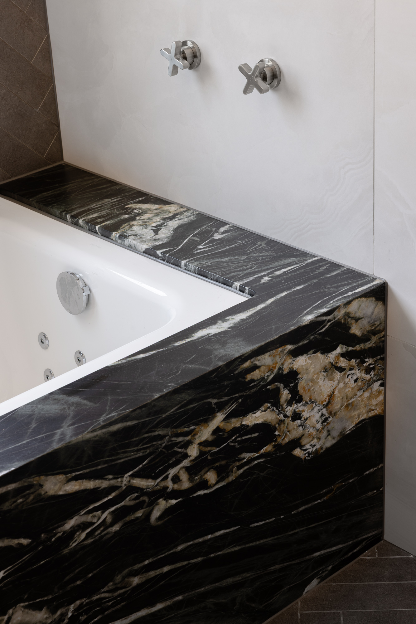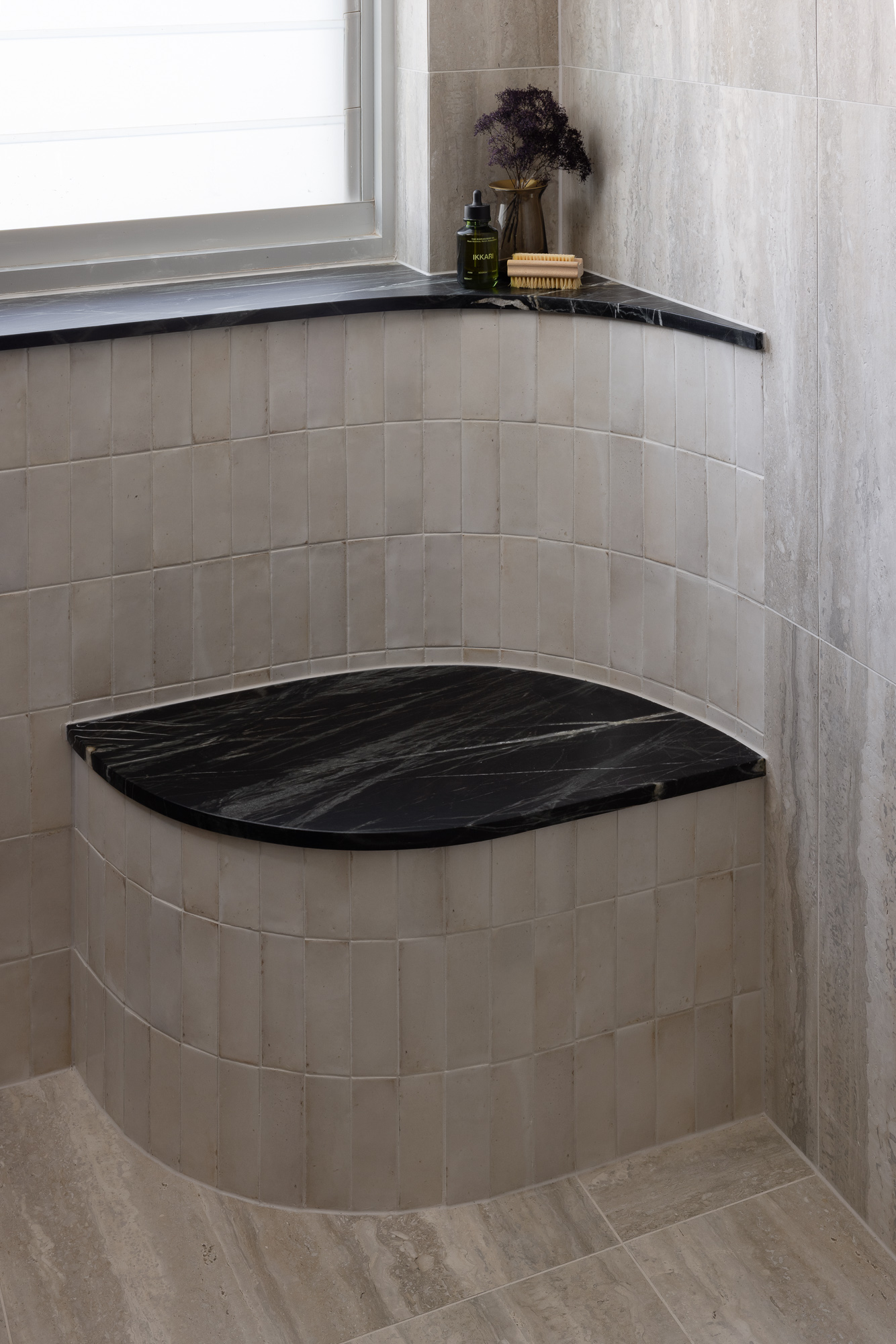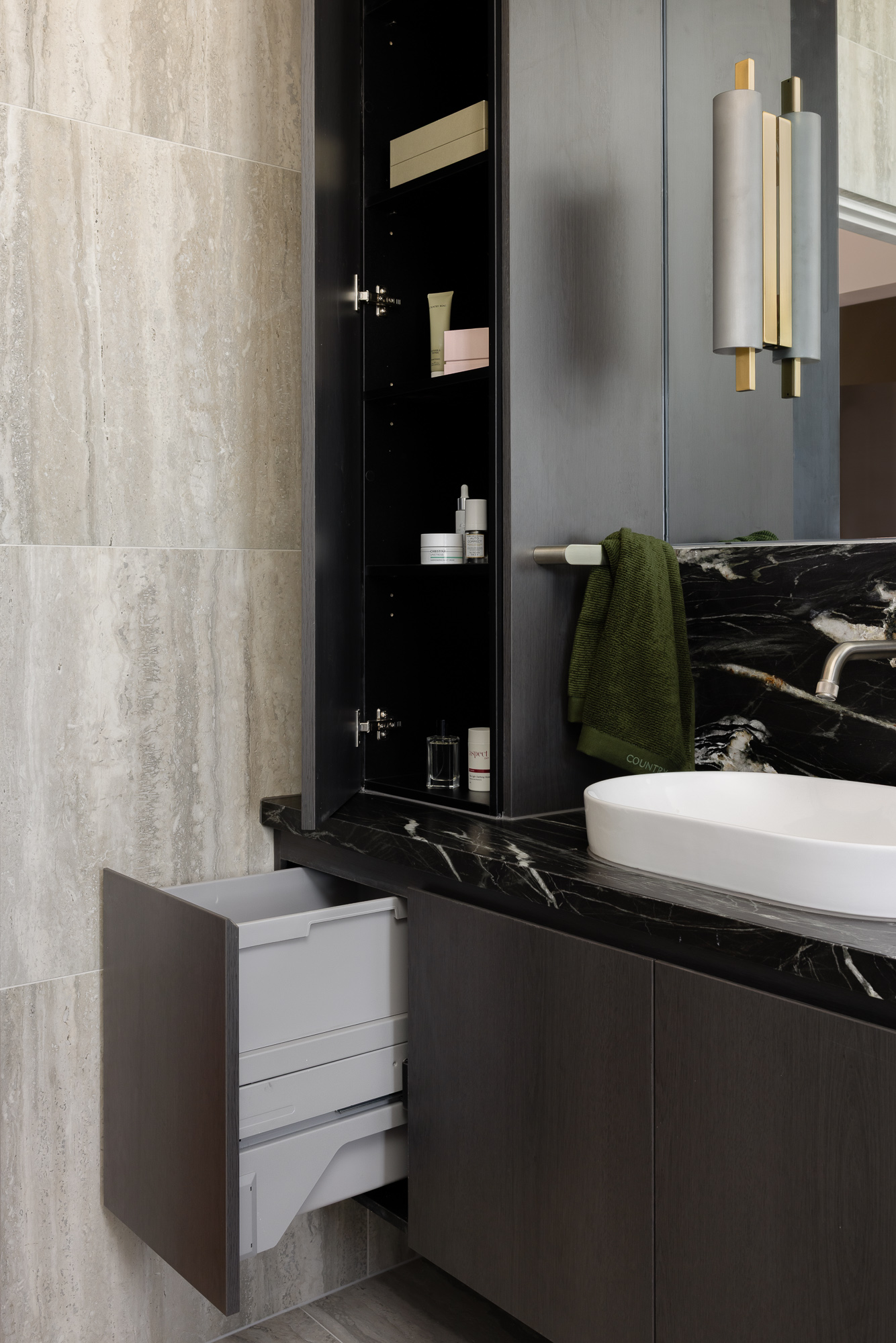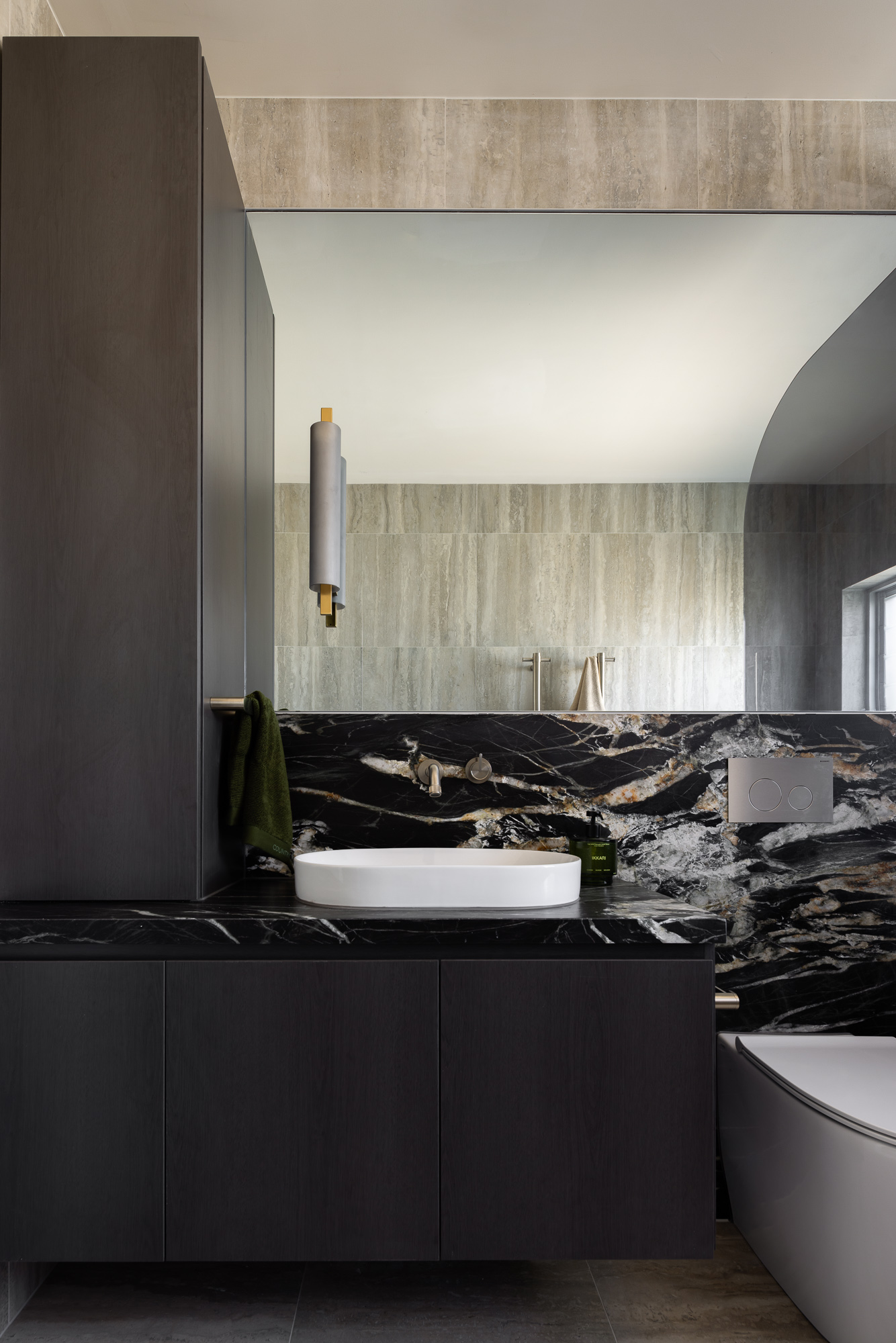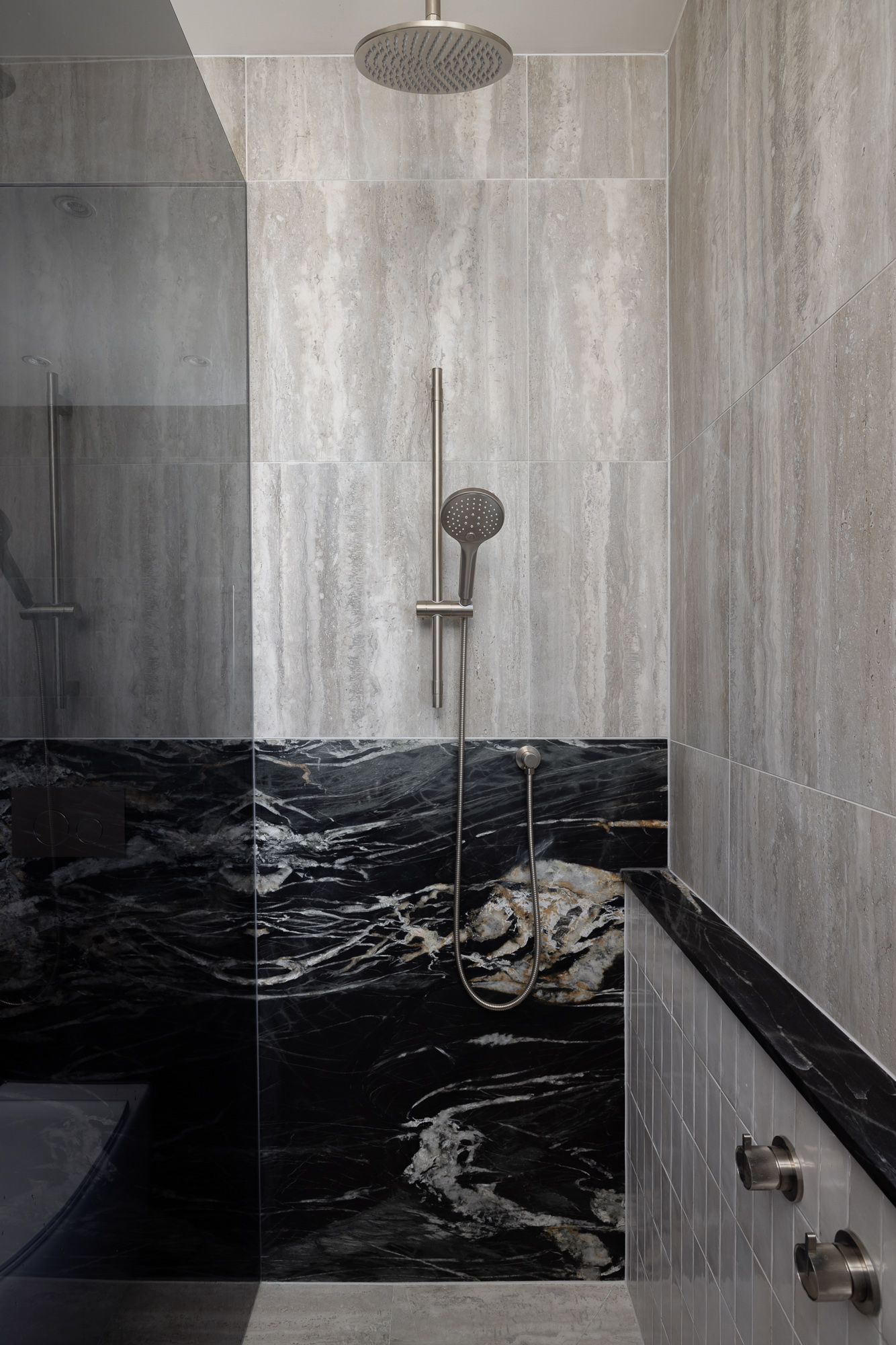 A luxury bathroom renovation in Abbotsford, this design + build project transforms our ensuite and walk-in robe into a cohesive, hotel-style retreat. Dark stone finishes, custom bathroom joinery, and layered lighting define the ensuite, while a bespoke walk-in robe renovation delivers increased storage and functionality. Subtle updates to the main bathroom and custom built-in study storage complete this considered interior renovation, creating a seamless, elevated home.