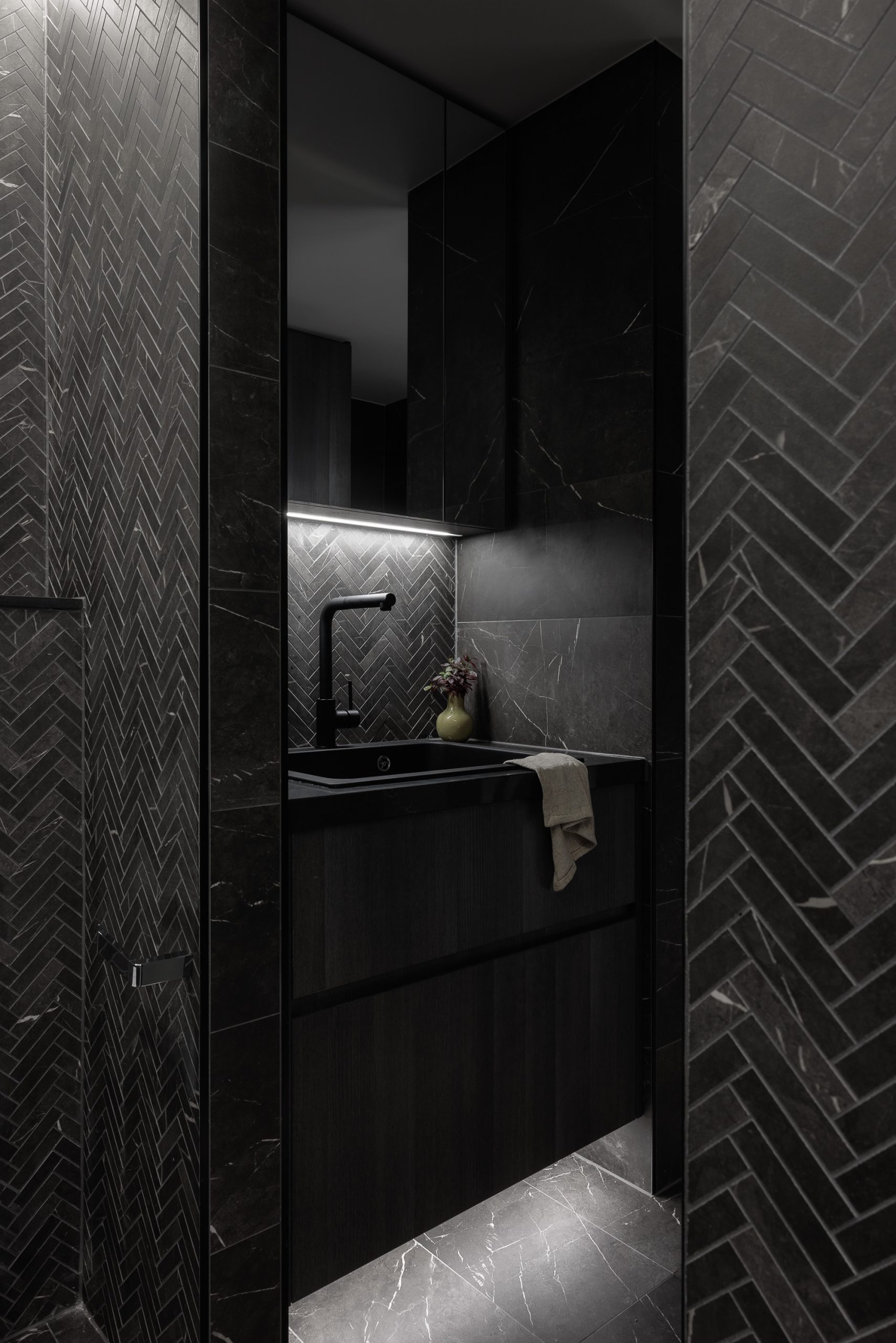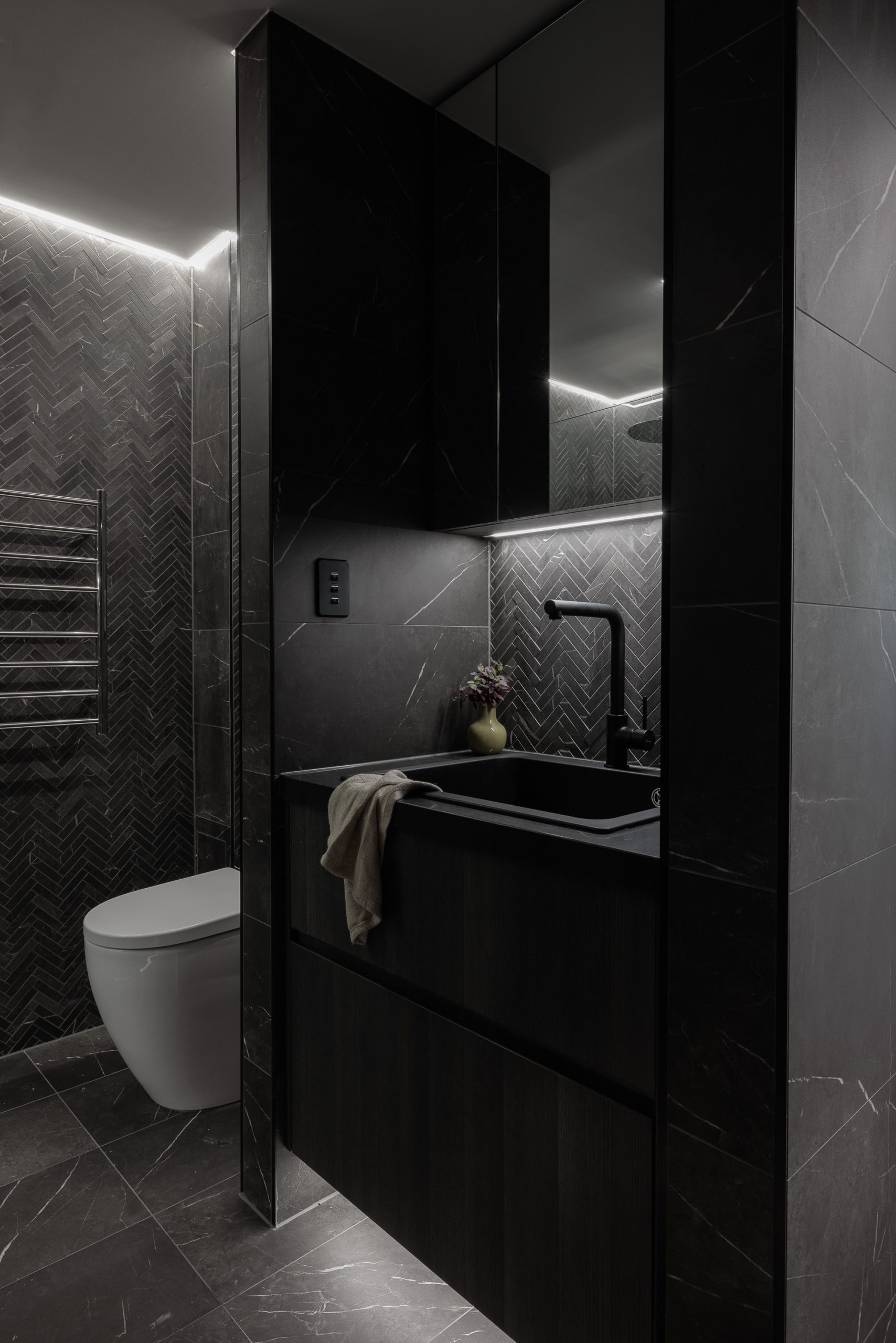 With some clever floor plan manipulation, we were able to create this moody oasis that suited our clients' needs whilst ensuring it connected to the rest of the home.