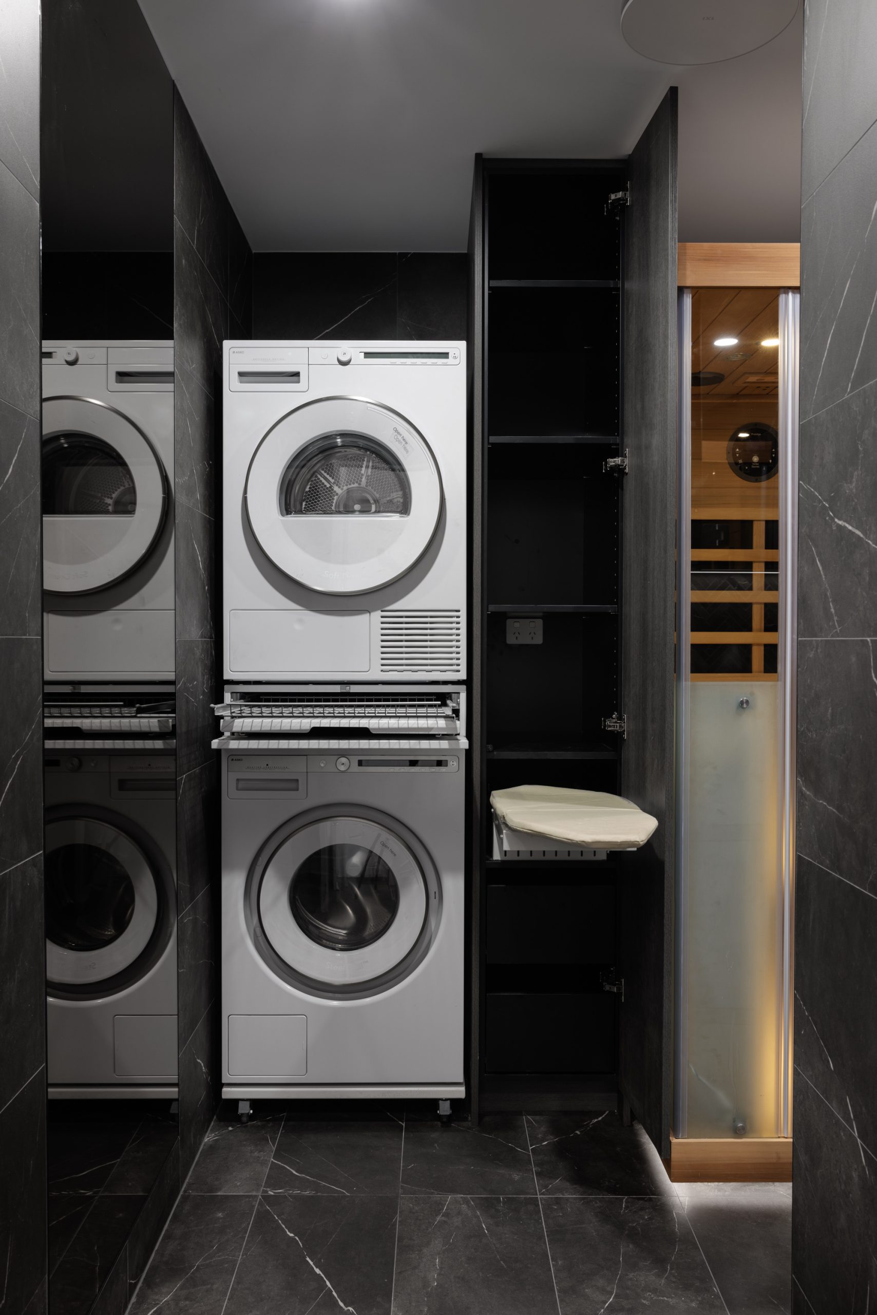 The laundry was awkward and unappealing. A dream of the clients was to have their own infrared sauna, and they called us in to see what can be done.
